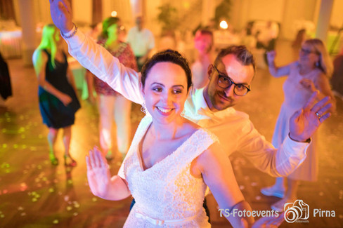 Die zahlreichen Gäste feierten mit dem Brautpaar in dem sehr schön dekorierten großen Festsaal des Schützenhauses in Pulsnitz.