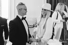 Es ist schon relativ selten, dass ich ein Brautpaar vor einer Hochzeitsreportage nicht kennenlerne. Im Normalfall führe ich mit den Brautpaaren immer erst ein Vorgespräch um Details zu besprechen. Aber aufgrund der kurzfristigen Anfrage war es dieses Mal einfach nicht anders möglich. Also ließ ich mich einfach überraschen - und...: Was für ein tolles Paar! Sehr stielsicher gekleidet und äußerst charmant.